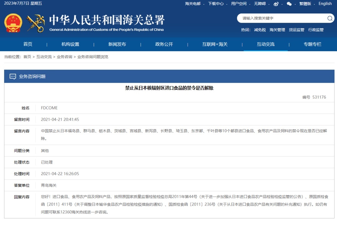 7月7日,#我国海关粗心入口日本福岛等十个县食物#登上了微博热搜。